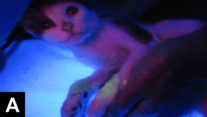 Bannockburn Veterinary Clinic We Often Use Special Tools And Instruments On Your Pets To Diagnose Conditions Or Diseases This Cat Is Showing A Positive Result For Ringworm Under A Wood S Lamp